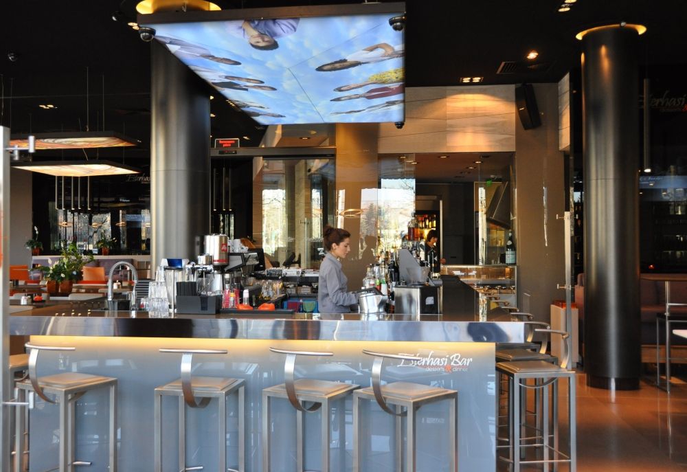 Esterhasi Bar praler af en ren og stilfuld indretning designet af Nina og Yordan Stefanov i overensstemmelse med alle de seneste trends og modekrav. Kombinationen af moderne møbler, livlige farver, spektakulær brug af lys og masser af friske blomster giver stedet en unik atmosfære, der kun kan sammenlignes med den oprindelige følelse af de fancy London-barer og restauranter. De forbløffende udsigter til Vitosha bjergene og den dejlige opvarmede terrasse åben for kunder 365 dage om året, læsser til gengæld baren med lokalt charme og hyggelig komfort.