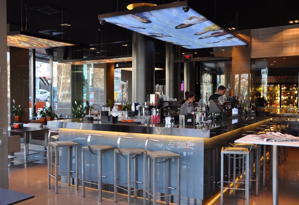 Om morgenen tager Esterhasi Bar form af en rolig café, der serverer friskbagte croissanter og cremet italiensk cappuccino. Fra klokken middag og frem til ca. kl. 14.30 forvandler stedet sig til en sofistikeret bistro, hvor man kan prøve en dejlig variation af lækre salater og frokostretter. Om eftermiddagen overtages det af et fint konditori, der tilbyder utrolige desserter og forfriskende te, mens det om aftenen bliver en dejlig gourmetrestaurant, hvis forførende sushi, guddommelige pasta, ekstraordinære fiskespecialiteter og spændende udvalg af mousserende og tørre vine vil fortrylle dig og opfylde alle dine behov.