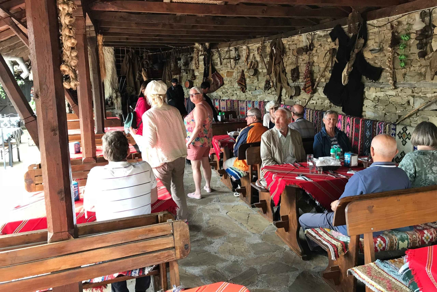 Start dagen med henting fra hotellet ditt i Sunny Beach. Reis i en komfortabel buss med en guide som snakker ditt språk. Nyt den naturskjønne kjøreturen langs de berømte «Stara Planina»- eller «Balkan»-fjellene, som har gitt navn til Balkanhalvøya. Ankom den sjarmerende landsbyen Zheravna, hvor tiden ser ut til å ha stått stille. Spaser langs brosteinsbelagte gater og besøk et hus fra 1700-tallet med bevarte detaljer fra det bulgarske livet på den tiden, inkludert en original vevstol og en kiste med brudens medgift. Deretter går turen til et kirkekompleks i en rolig og skyggefull hage, hvor du kan besøke den aktive ortodokse kirken «St. Nicolas», bygget i 1834. Nyt lunsj i hagen til et lokalt hus, og bruk deretter fritiden til å utforske landsbyen. Fortsett til naturreservatet «Blue Stones» for en panoramisk tur til toppen av fjellet. Ta en fantastisk tur med stolheisen over fjellene og lavlandet. Hvis du ikke ønsker å ta heisen, kjører bussen deg til den siste heisstasjonen. Avslutt turen med et besøk i byen Sliven, som ligger ved foten av fjellene. Utforsk sentrum, besøk et stort bondemarked, ortodokse kirker og kjøpesentre. På veien tilbake kan du nyte utsikten over det bulgarske lavlandet med store vingårder og kornåker.Includes